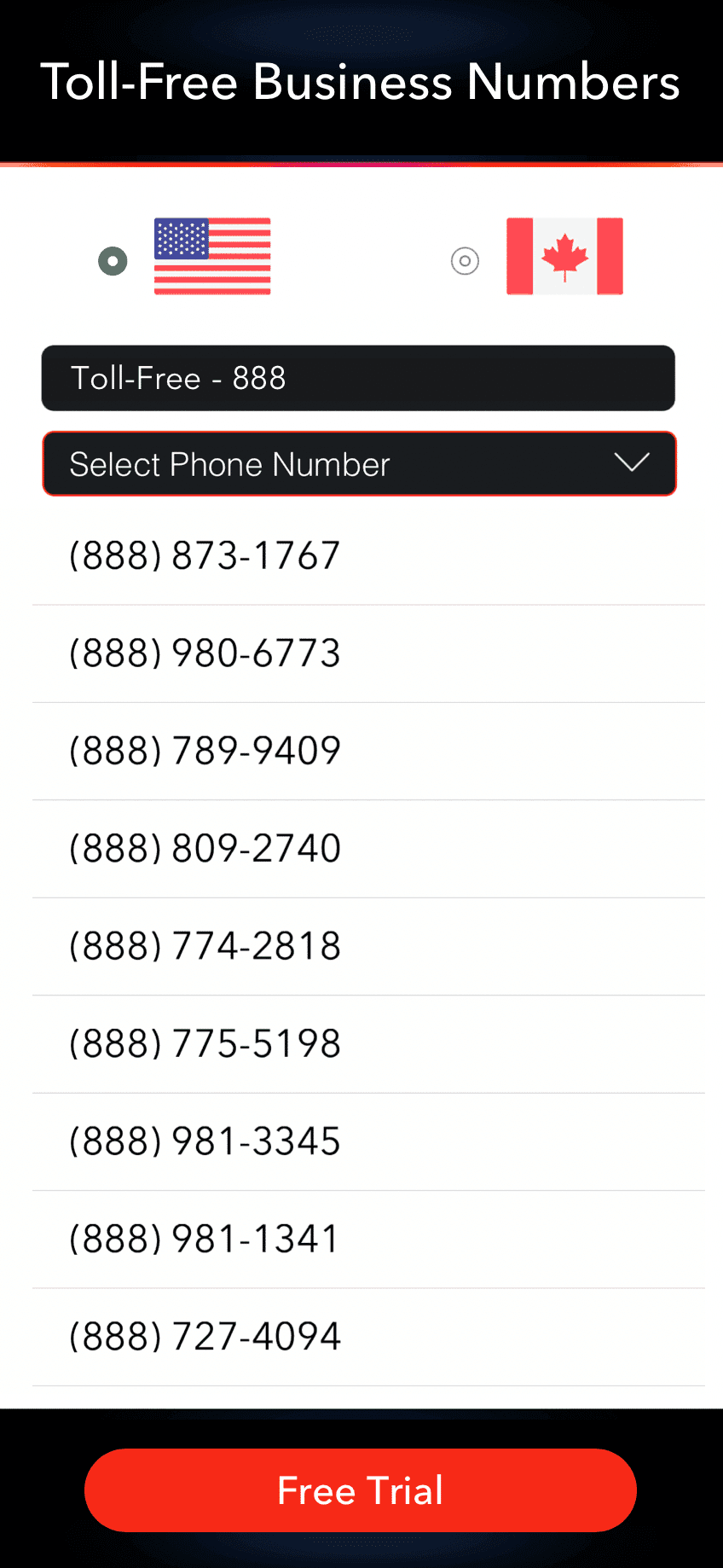 We offer business phone numbers across all area codes in the U.S. and Canada. Tap and the number is yours. Learn about local business phone numbers and toll-free business phone numbers. You can also port your current business number.