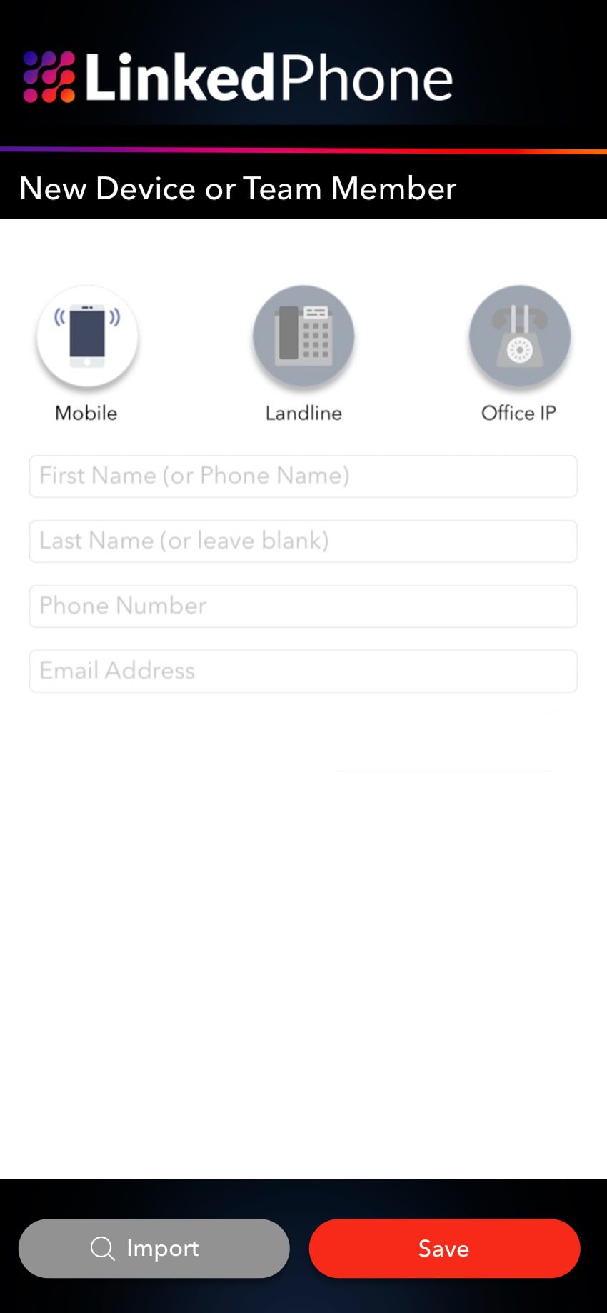 Next, the LinkedPhone app will prompt your name, email, and photo (optional). We will send tips, instructions, and a back-up of your voicemail by email. At this point, you will then have the option to add team members. New users will receive an email with app download instructions. Users can use the app for free.